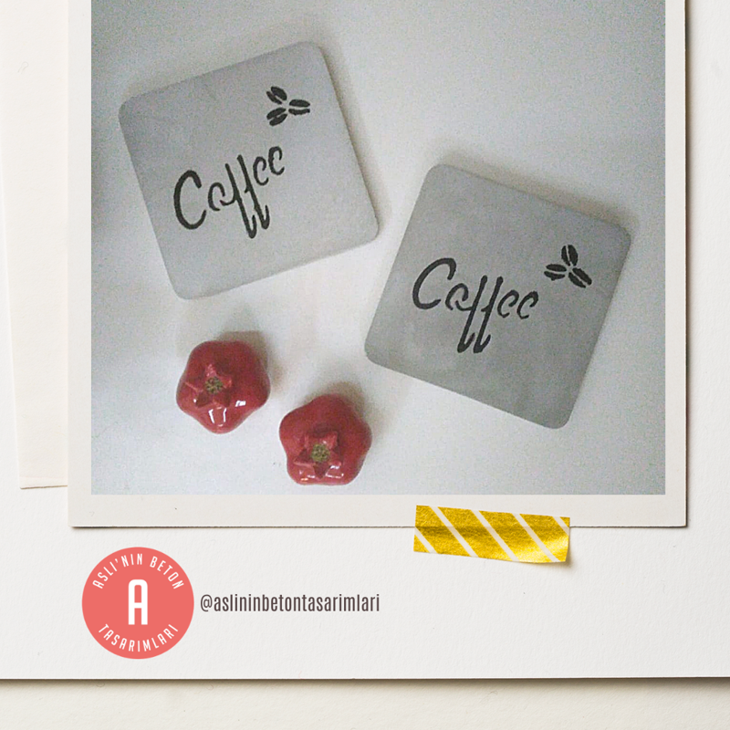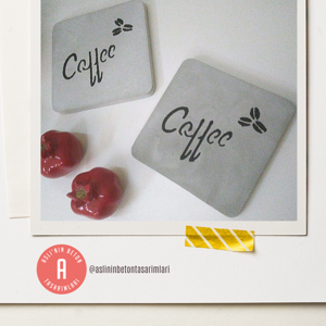 ✔️ Bardak altlıkları betona uygun akrilik boyalar ile boyanarak vernik atılmış bir şekilde gönderilmektedir.