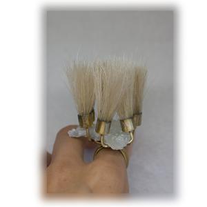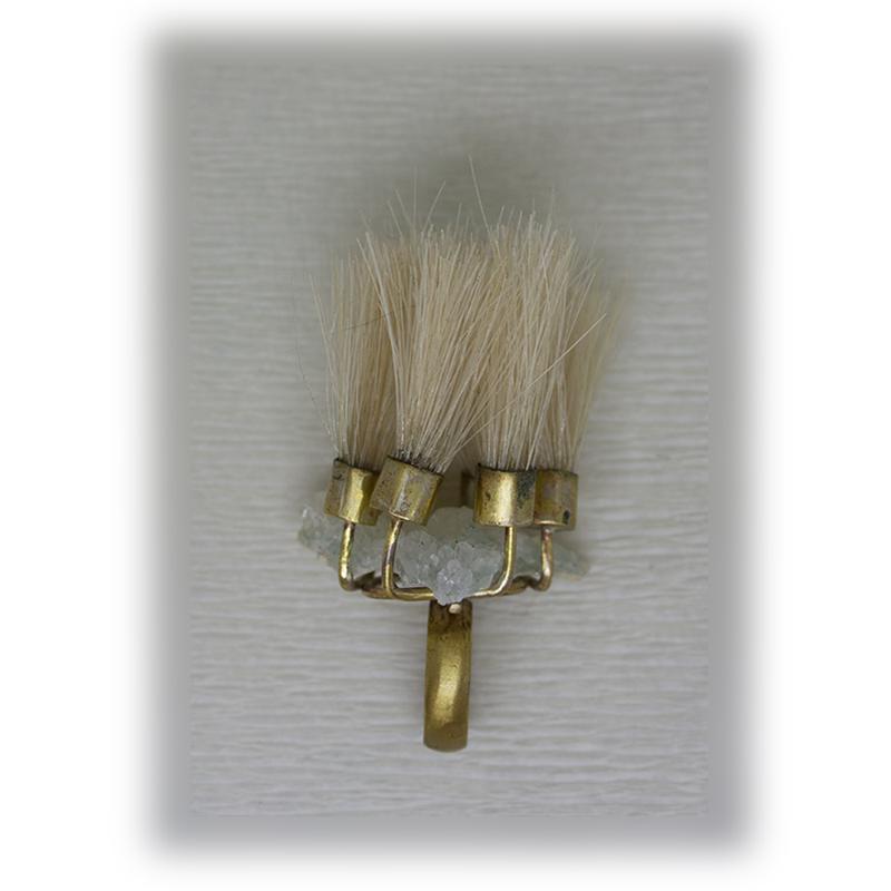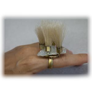 açık mavi kristal kuvars, at kılı ve pirinç alaşım kullanılarak üretilmiş yüzük.