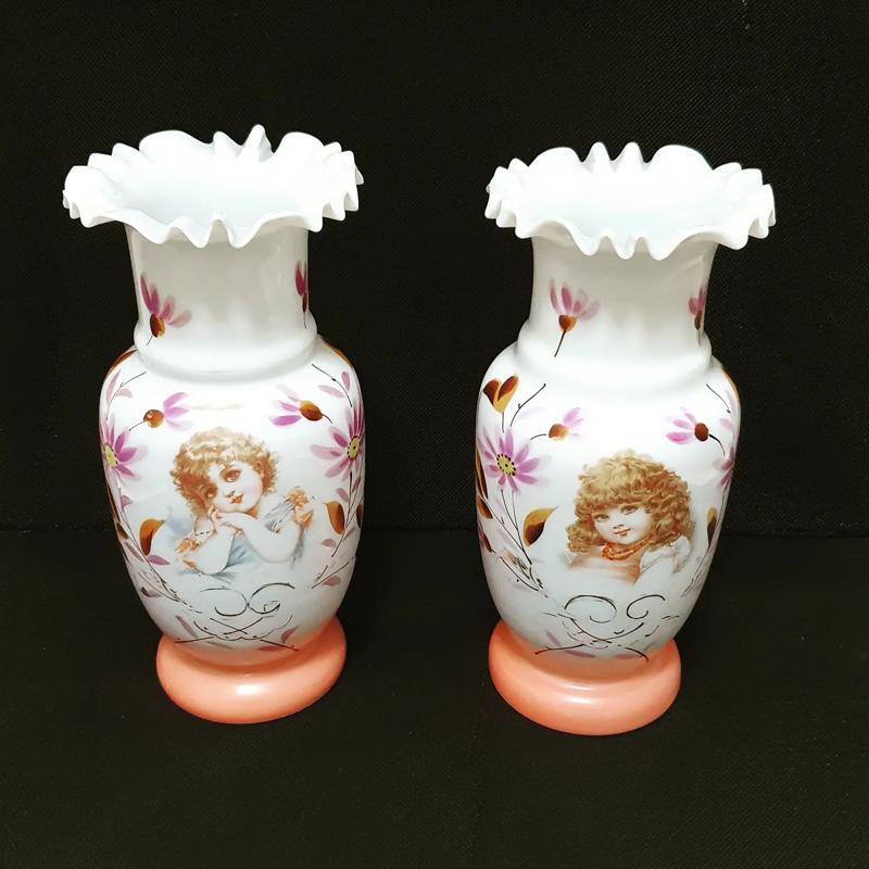 Antika Fransız Opalin çift vazo....27 cm boy
