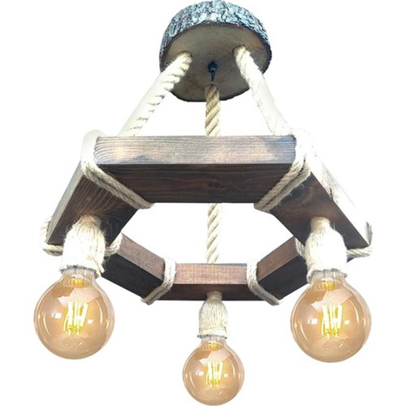Ahşap Doğal Kütük Halatlı 3'lü Avize