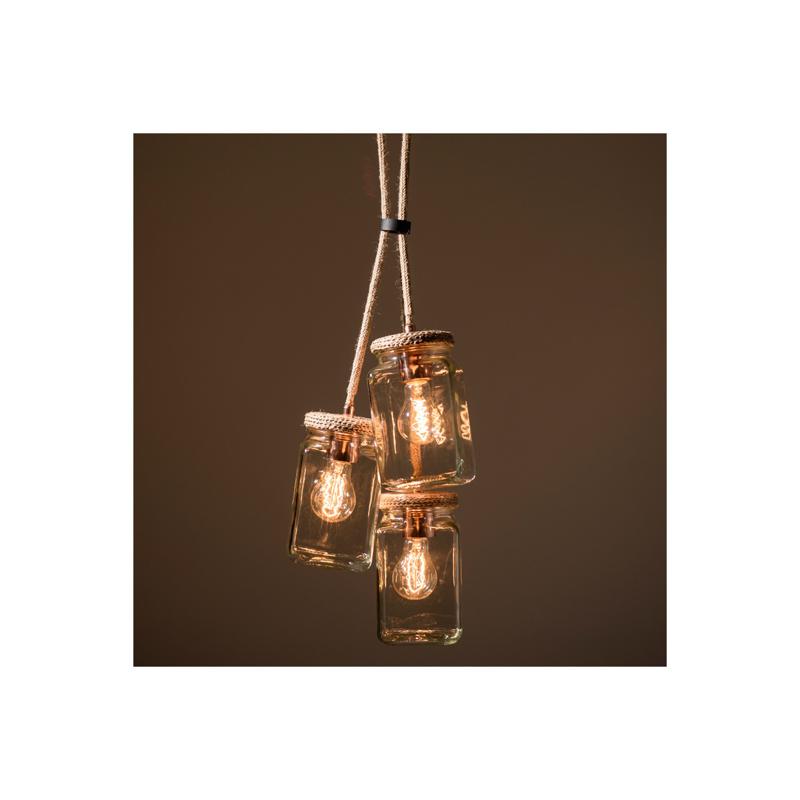 Ahşap Doğal Kütük Halatlı 3'lü Avize