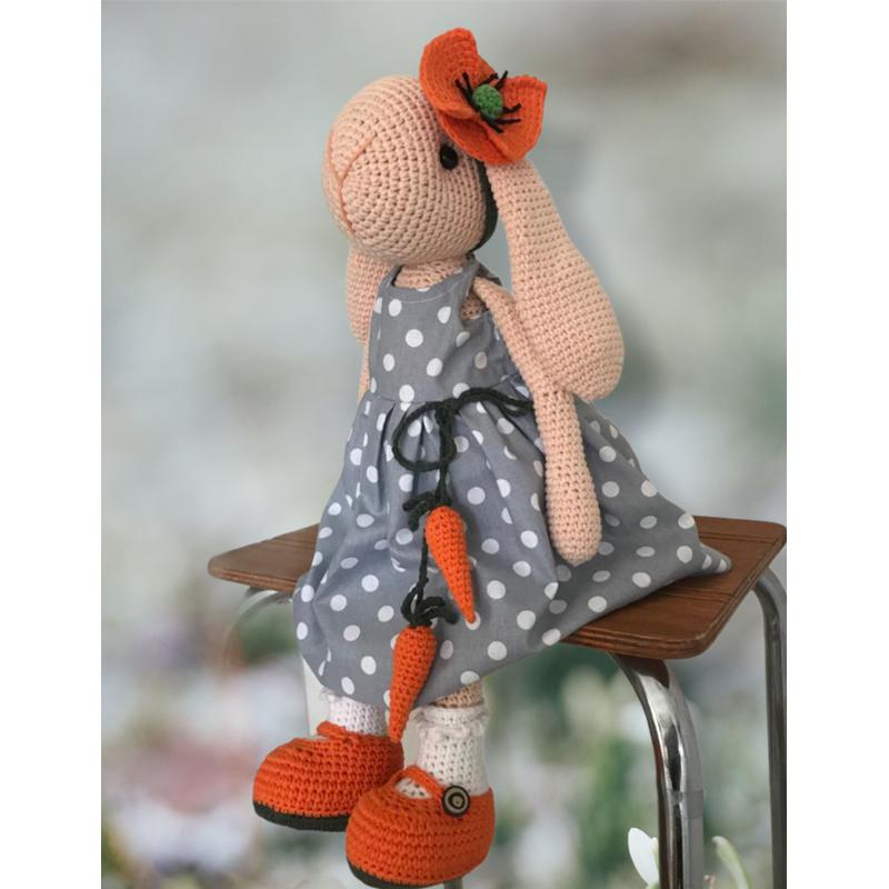 Sağlığa uygun ipler ve dolgu maddeleri ile, elde özenle örülmüştür. Elbisesi özel dikimdir.
