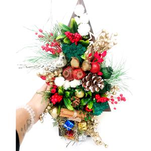 Ahşap özel tasarım kasası içerisinde farklı kuru ve şoklanmış çiçekler, yemişler, kozalaklar kullanılarak oluşturulmuş, şık ve dekoratif bir üründür. İster duvarınıza asabileceğiniz ya da masa veya sehpa üstü değerlendirebileceğiniz ürün el yapımı bir tasarım üründür. Ölçüleri: 43x23 cm dir.
