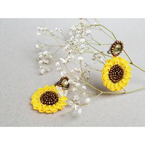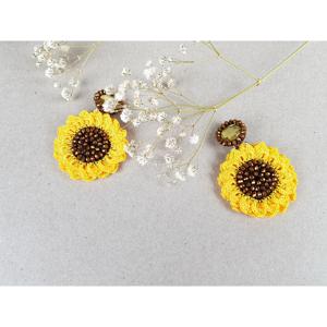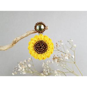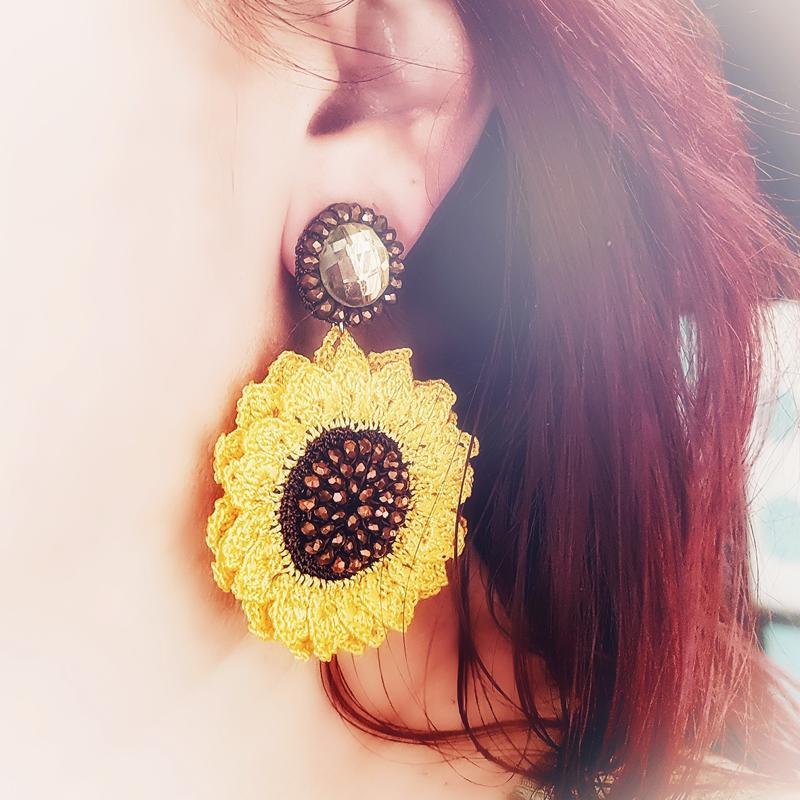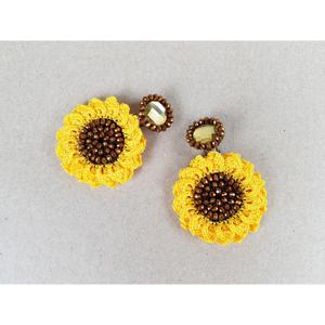 El Yapımı Tığ İşi Ayçiçeği Klipsli Küpe - Etenna